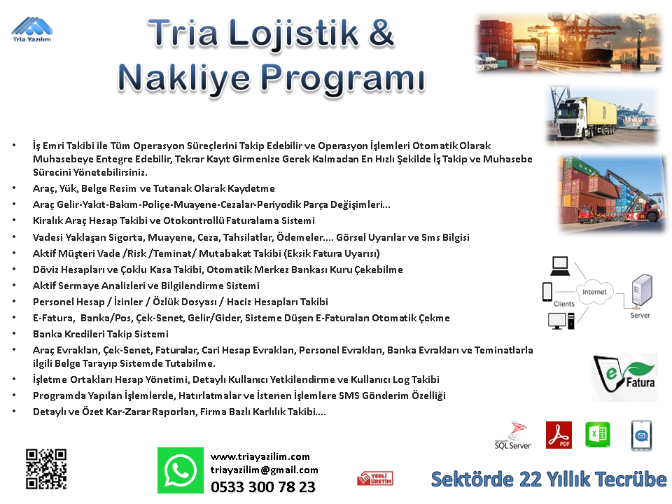 triayazilim@gmail.com +90 0533 300 7823 Tria Online Giriş